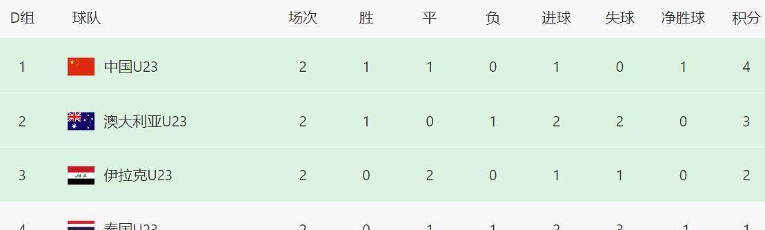 两轮过后,D组的积分榜成了最有趣的风景。 中国队4分第一,澳大利亚3分第二,伊拉克2分第三,泰国0分垫底。 命运,从未如此牢牢掌握在自己手中。