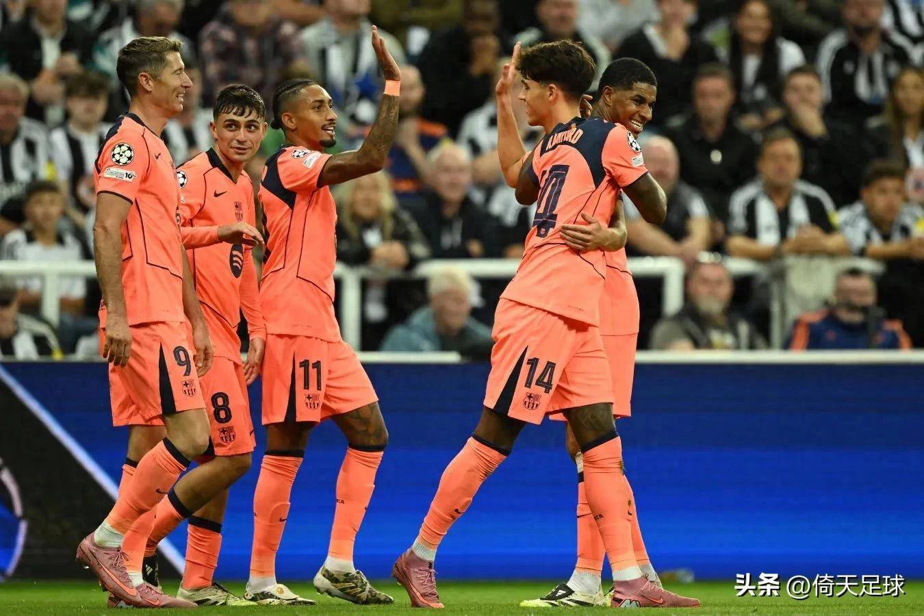 亚马尔的缺席,使得从曼联租借而来的马库斯·拉什福德获得了首发机会。这位英格兰国脚也迅速融入球队,在上一场欧冠对阵纽卡斯尔联的比赛中,拉什福德梅开二度,帮助球队以2:1险胜对手,成为球队的英雄。巴萨的攻击点众多,让对手防不胜防。例如,在对阵瓦伦西亚的比赛中,莱万多夫斯基、费尔明·洛佩斯和拉菲尼亚三人同时上演梅开二度,达尼·奥尔莫和费兰·托雷斯也均有进球入账。如此多样的进攻手段,让对手难以进行针对性的防守。