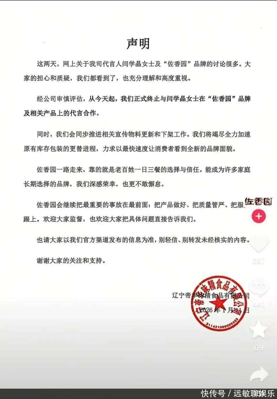 体育,足球,波胆,反波胆,角球,串关,大小球,世界杯,欧洲杯,比分,足球比分,赛事,足球赛事,电竞赛事,体育赛事直播,足球直播平台,世界杯直播,足球直播,体育直播,NBA直播,游戏直播,LOL直播1月11日,辽宁帝华味精食品有限公司发布公告,正式宣布终止与演员闫学晶在佐香园品牌及相关产品上的代言合作。公告中写道:大家的担心与质疑,我们已充分看到,并深刻理解。经过公司审慎评估,决定从今天起正式终止与闫学晶女士的合作。