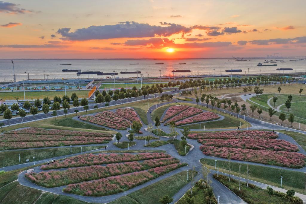这是10月23日拍摄的南通市滨江花海(无人机照片)。新华社发(许丛军 摄)
