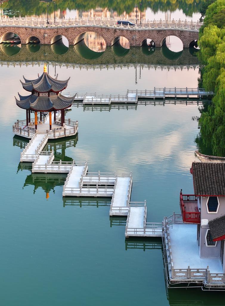 位于南通博物苑东侧的九曲桥是当地市民漫步休闲的好去处,也是寻找城市记忆的“打卡地”(8月24日摄)。新华社发(许丛军 摄)