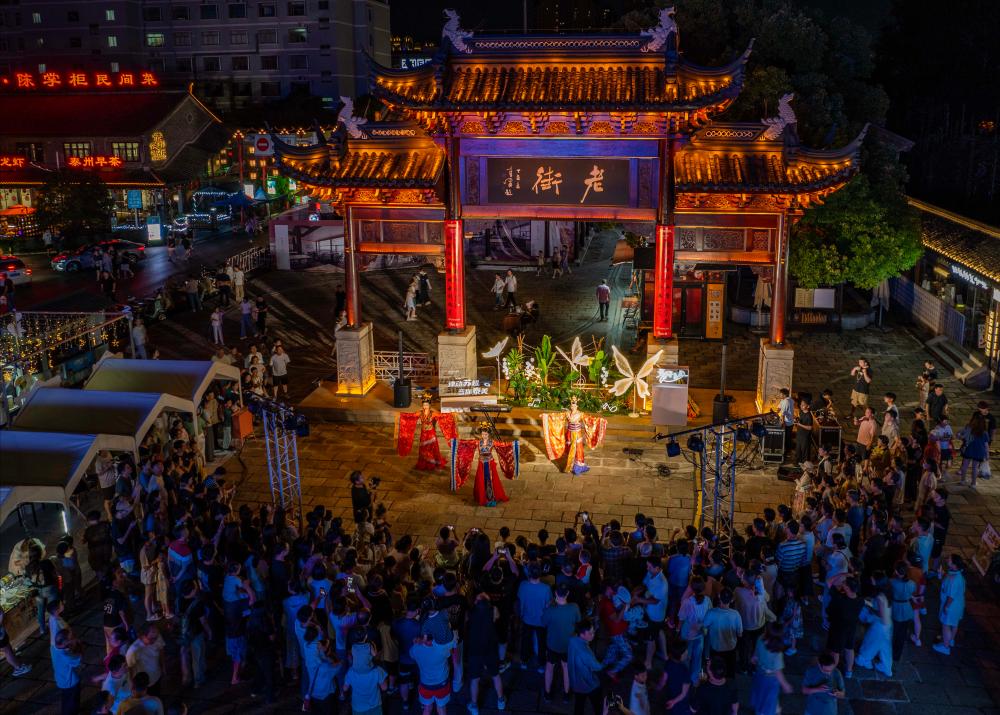 6月28日,人们在江苏省泰州市海陵区老街景区“律动苏超音你泰美”音乐节上观看表演(无人机照片)。新华社发(汤德宏 摄)