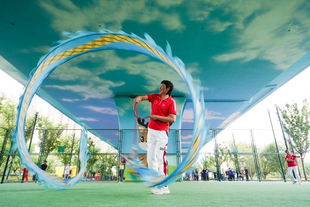 市民在泰州市东环高架体育公园健身(2022年8月28日摄)。新华社记者 季春鹏 摄